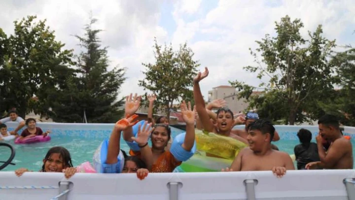 Büyükçekmece'de çocuklar için havuz yapıldı. Denize uzak bir bölgede yaşayan çocuklar havanın aşırı sıcak olmasından dolayı serinlemek için talep ettikleri havuza girip oyunlar oynadı.