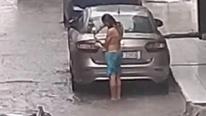 İzmir'de etkili olan sağanak yağış bazı bölgelerde hayatı felç ederken, ilginç anlar da ortaya çıktı. Sağanak yağmur altında ve sel sularının içinde bir kişinin şampuanla duş alması cep telefonu kamerasına yansıdı.