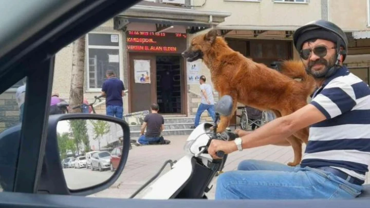 Açıklama yapan Mustafa Eryılmaz, '3 aydır köpeğimle böyle geziyoruz. 6 aylık köpeğim. Böyle seyahat etmeye alıştı. Biz nereye o oraya gidiyor. Her istediğimi yapıyor' dedi.