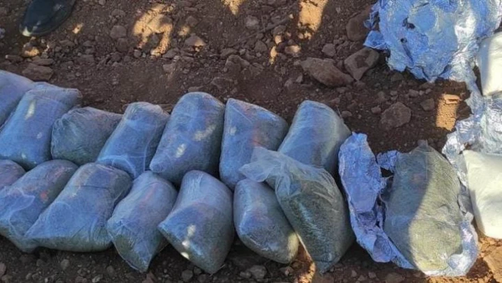 Şanlıurfa'da jandarma tarafından fıstık bahçesinde yapılan aramada toprağa gömülü vaziyette piyasa değeri yaklaşık 3 milyon lira olan 15 kilogram bonzai maddesi ile 6 kilogram metamfetamin maddesi ele geçirildi.