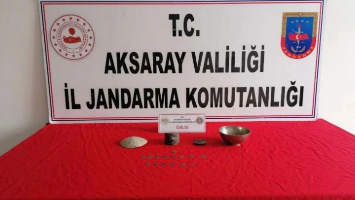Aksaray'da kaçak kazılardan elde ettiği tarihi eser objeleri satmak için kent merkezine getiren bir kişi, jandarmanın operasyonuyla kıskıvrak yakalandı.