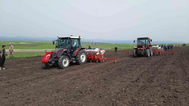 Selim Ovası ayçiçeği ile buluştu. Vali Öksüz, traktöre binde ayçiçeği tohumlarını toprakla buluşturdu.