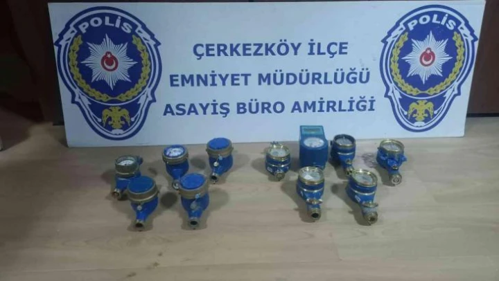 Tekirdağ'ın Çerkezköy ilçesinde 3 günde meydana gelen 11 farklı adreste su sayacı hırsızlarını yakalamak için çalışma başlatıldı. Çerkezköy İlçe Emniyet Müdürlüğü ekipleri, yaptıkları titiz takip sonucunda şüpheli şahısların U.S. ve O.S. isimli şahıslar olduğunu tespit etti. Yapılan çalışma sonucunda şüpheli şahıslar yakalandı. Yapılan araştırmada su sayaçlarının hurdacıya satıldığı bilgisini alan polis ekipleri yaptıkları aramada 11 adet su sayacını buldu. İş yeri sahibi K.A.'ya işlem başlatılırken, şüpheli O.S. ve U.S. gözaltına alındı. Şüphelilerin işlemleri sürüyor.