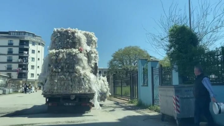 Sancaktepe'den yan yol üzerinden Sultanbeyli'ne doğru seyir halinde olan kamyonet sürücüsünün kasasına aşırı yüklediği geri dönüşüm malzemeleri adeta kazaya davetiye çıkarttı. Kasadaki malzemelerin rüzgar nedeniyle de her an devrilecek gibi durması ve malzemelerin kamyonetin yan tarafına doğru sarkması trafikteki diğer sürücülerin panik olmasına neden olurken, kamyonet sürücüsünün tehlikeli yolculuğu bir vatandaş tarafından cep telefonu kamerasıyla saniye saniye kaydedildi.