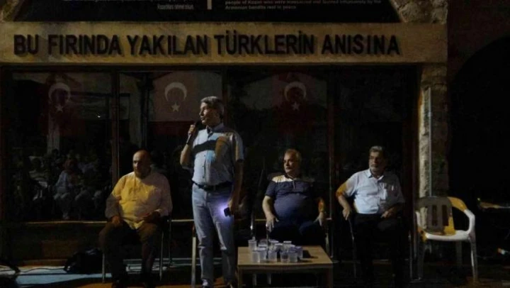 Prof. Dr. Yusuf Halaçoğlu, Adana'nın Kozan ilçesinin düşman işgalinden kurtuluşunun yıldönümü dolayısıyla Ermenilerin Müslüman Türkleri diri diri yaktığını mezalim fırını önünde konferans verdi.