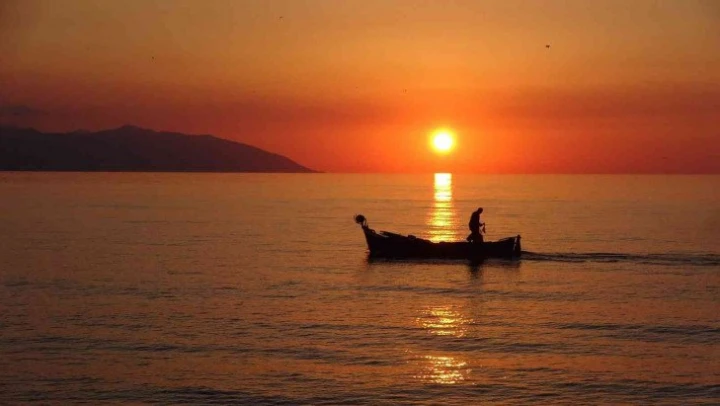 Trabzon'da gün batımı objektiflere böyle yansıdı. Kıyı balıkçıları sahile yakın yerlere bıraktıkları ağlarla balık avlamaya çalışması, bazı vatandaşlarda karadan oltasını gün batımında denize atarak kısmetini beklemesi kartpostallık görüntüler oluşturdu.