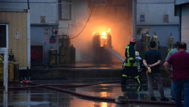 Tüp dolum merkezinde patlama: Ekipler yangını söndürmek için seferber oldu