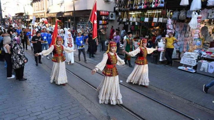 Bursa Büyükşehir Belediyesi tarafından Keles Belediyesi işbirliği ile Bursa Valiliği, İl Kültür Turizm ve Tanıtma Birliği, Türkiye Geleneksel Spor Dalları Federasyonu, Dünya Etno Spor Konfederasyonu, Türksoy ve Türk Dünyası Belediyeler Birliği'nin katkılarıyla bu sene 5'incisi düzenlenen Türk Dünyası Ata Sporları Şenliği, Cumhuriyet Caddesi'nde kortej yürüyüşüyle başladı. Büyükşehir Belediye Başkanı Alinur Aktaş, Bursa Milletvekili Ahmet Kılıç, Keles Belediye Başkanı Mehmet Keskin, Orhaneli Belediye Başkanı Ali Aykurt, AK Parti İl Başkanı Davut Gürkan ve sivil toplum kuruluşlarının temsilcilerinden oluşan protokol üyeleri, Cumhuriyet Caddesi girişinden Fomara 15 Temmuz Demokrasi Meydanı'na kadar yürüyerek halkı selamladı. Protokol üyelerinin yürüyüşüne Osmanlı savaş müzikleriyle mehter takımı ve rahvan atları derneği ekipleri de eşlik etti. Yürüyüş sonunda Kazakistan'dan gelen misafirler, geleneksel halk danslarını sergiledi. Birbirinden farklı figürler sergileyen ekip, Bursalılardan yoğun ilgi gördü.