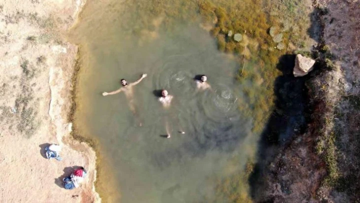 Sivas'ın Yıldızeli İlçesine bağlı Bakırcıoğlu köyünde bulunan ve köylüler tarafından 'Uyuz çermik' adı verilen uçurumun kenarındaki göl şifa dağıtıyor.