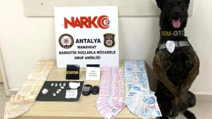Manavgat Emniyet Müdürlüğü Narkotik Suçlarla Mücadele Grup Amirliği ekiplerince uyuşturucu madde kullanımını ve ticaretini önlemeye yönelik olarak yapılan saha çalışmaları bünyesinde Kasaplar Mahallesi 8527 Sokak üzerinde bulunan müstakil binada arama yapıldı. Cumhuriyet Savcısından alınan arama kararı doğrultusunda narkotik madde arama köpeği Pars'ın da katıldığı aramada; satışa hazır vaziyette 11 küçük paket halinde toplam 14,98 gram metamfetamin maddesi, 1 adet mouse görünümlü hassas terazi ile uyuşturucu madde ticaretinden elde edildiği değerlendirilen 19 bin TL para ele geçirildi.