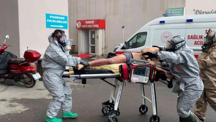 Kocaeli'nin Dilovası ilçesinde bulunan kimyasal madde depolama tesisinde çalışan işçi, üzerine fenol maddesi dökülmesiyle birlikte ağır yaralandı. Yaralıya, özel kıyafetlerini giyen sağlık ekipleri müdahale etti.