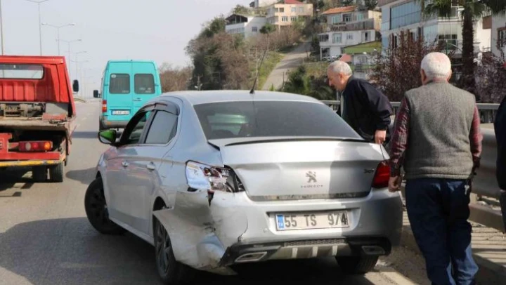 Kaza, Canik ilçesi İlkadım Bulvarı viyadük üstünde saat 15.00 sıralarında meydana geldi. Edinilen bilgiye göre, Levent A.(41) idaresindeki 55 SM 244 plakalı hafif ticari araç, Hasan Y.'nin (54) kullandığı 55 TS 244 plakalı otomobile arkadan çarptı. Otomobil aldığı darbenin etkisiyle kendi etrafında dönerek refüje çıktı. Kazanın ardından otomobil sürücüsü Hasan Y. göğsünden hafif yaralanırken, olay yerine gelen ambulanstaki sağlık ekipleri ilk müdahaleyi yaptıktan sonra buradan ayrıldı.