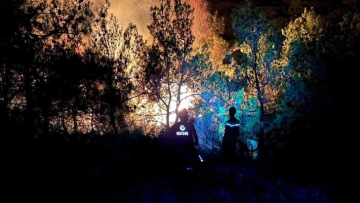 Aydın'ın Söke ilçesinde devam eden orman yangınına karşı gece görüş donanımlı yangın söndürme helikopterleri alevlere müdahale etmeye başlarken, alevlerin kontrol altına alınması için çalışmalar yoğun bir şekilde devam ediyor. Orman Bölge Müdürlüğü ile itfaiye ekipleri havadan ve karadan söndürme çalışmaları gerçekleştirirken, yangının görünmez kahramanları olan birçok Sivil Toplum Kuruluşu ve gönüllüler de çalışmalara önemli destek sağlıyor. Farklı noktalardan belirlenen yangın noktasına ulaşmaya çalışan gönüllüler için dozer ekipleri de yol açma çalışması gerçekleştiriyor.