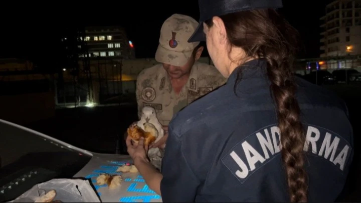 Olay, dün gece saat 20.00 sıralarında Şanlıurfa'nın Suruç ilçesinde yaşandı. Suriye sınırındaki Mürşitpınar yolunda hareket halinde yol kontrolü yapan jandarma trafik ekipleri, yaralı bir martı buldu. Martıyı araca alan ekipler, şehir merkezine getirip önce su, sonra ise yiyecek vermeye çalıştı. Martıya büyük bir şefkatle yaklaşan ekipler, uzun süren çabaların ardından su verip yemekle beslemeyi başardı. Kameralara da yansıyan görüntülerde bayan görevlilerin de olduğu jandarma ekibinin gayreti büyük takdir topladı.
