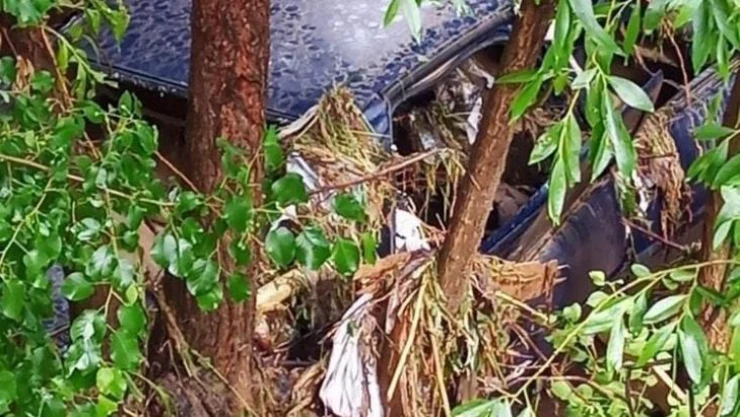 Ankara'da sel nedeniyle dereye düşen aracın çıkarılma anı kamerada