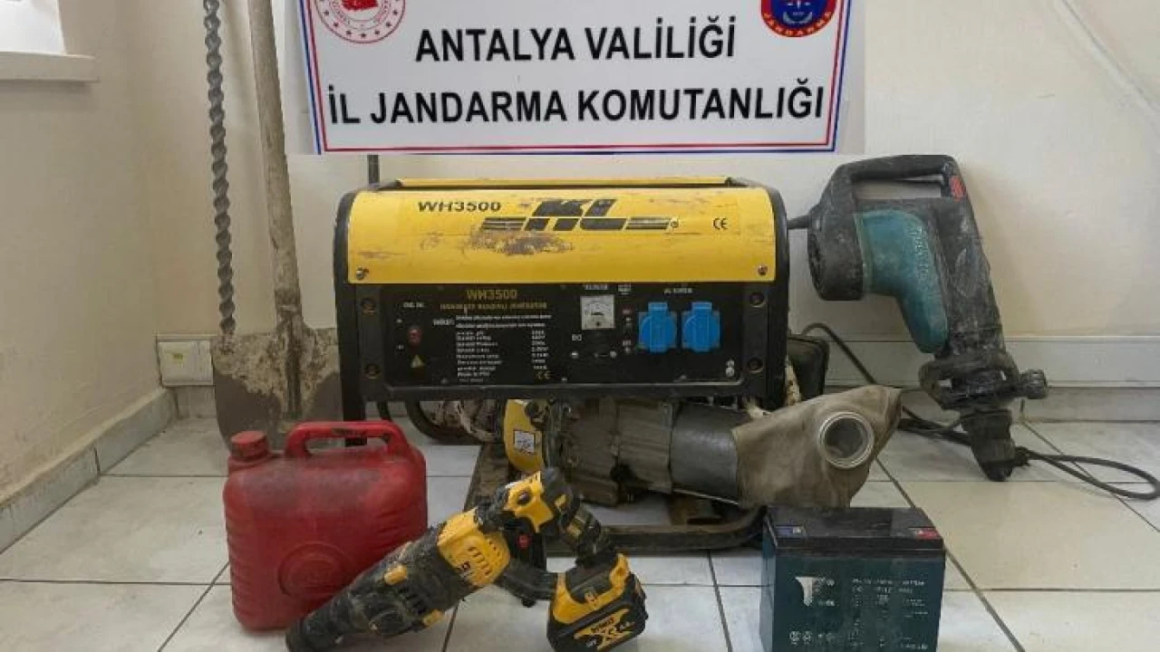 Antalya’nın Kemer ilçesinde kaçak kazı yapan 7 kişi suçüstü yakalanırken, çok sayıda suç aleti de ele geçirildi.