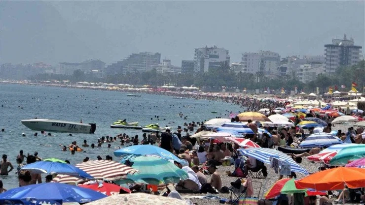 Antalya'da termometre 30 dereceyi gösterdi, vatandaş sahilde yer bulmakta zorlandı