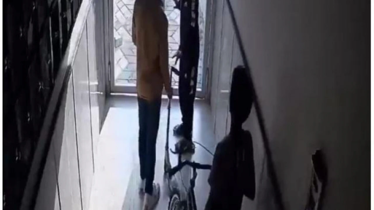 Ankara’nın Altındağ ilçesinde girdikleri apartmandan hırsızlık yaptıkları iddia edilen ve çocukların bisiklet ve scooter ile binadan çıkış anları güvenlik kamarası tarafından kaydedildi.