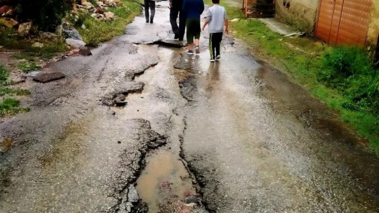 Kütahya'nın Aslanapa ilçesi Göynükören köyünde etkili olan dolu ve sağanak yağış sonrası oluşan selde, ekili tarım arazileri zarar görürken, köy içindeki yolların parke taşları yerinden söküldü.