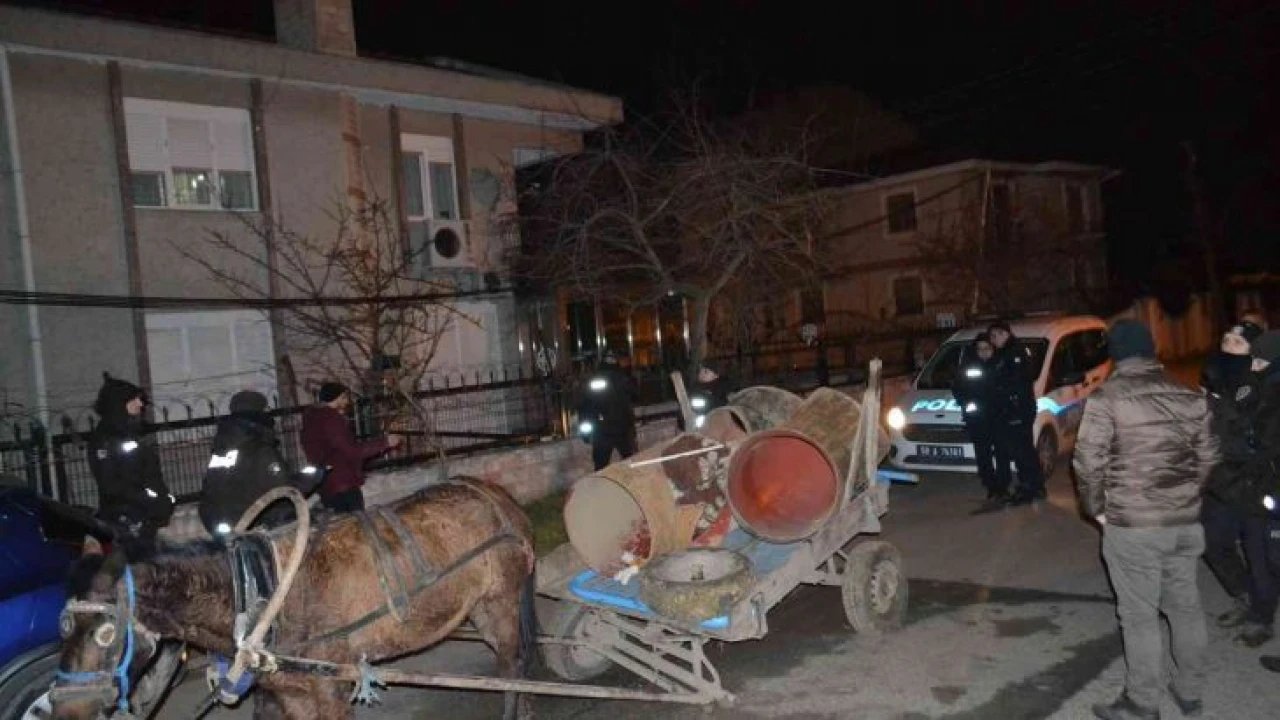 Edinilen bilgiye göre, Kazımiye Mahallesi su deposu civarından 600’lük diye tabir edilen çelik dirsek su boruları ile demir çit at arabalı kişilerce çalındı. Gece saatlerinde yaya devriye görevine çıkan Şehit Sabahattin Ergin Polis Merkezi’ne bağlı bekçiler, at arabalı şahısları Barbaros Caddesi üzerinde yakaladı. Bekçilerin olayı fark edip hırsızları yakalaması sayesinde hayvan da eziyetten kurtuldu.