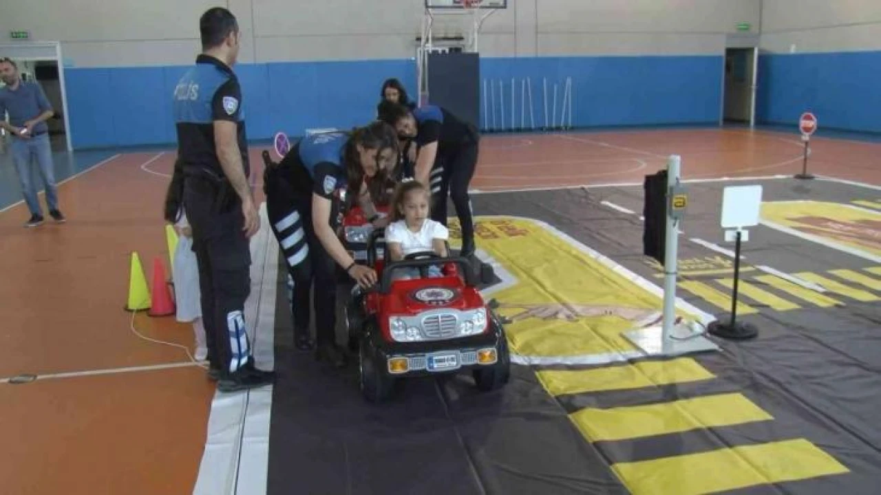 Ataşehir’de polis ekipleri, Trafik Haftası nedeniyle okullarda kurdukları parkur üzerinden minik öğrencilere trafikte güvenli yolculuğa ilişkin bilgiler verdi.