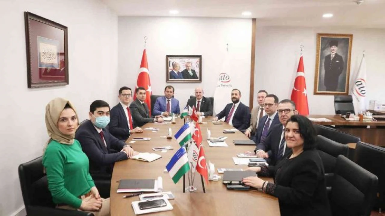 Özbekistan Cumhuriyeti Ticaret ve Sanayi Odası (TSO) Başkanı Davron Vakhabov, Ankara Ticaret Odası (ATO) Başkanı Gürsel Baran'ı ziyaret etti. İki ülke arasındaki ticaret hacminin en kısa sürede 5 milyar dolar ve ardından 10 milyar düzeyine çıkartılması gerektiğini belirten Baran, 'THY Ankara ile Özbekistan'ı direkt bağlayacak uçuş için çalışmalar yapıyor' dedi.