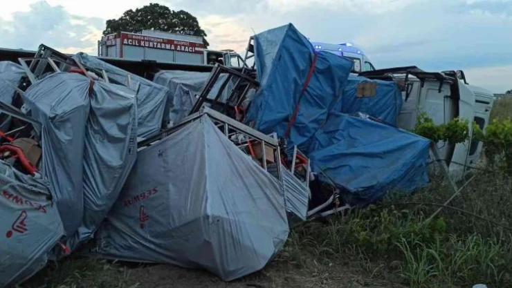ATV motosiklet taşıyan tır devrildi: 2 yaralı