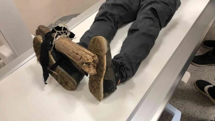 Ayağına batan çivili tahta ile hastaneye getirildi