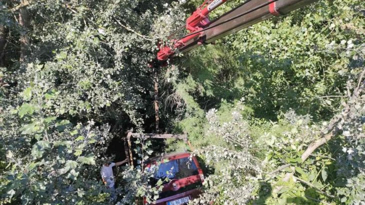 Ayazağa'da ticari araç dere yatağına uçtu, araçtakilerin burnu bile kanamadı