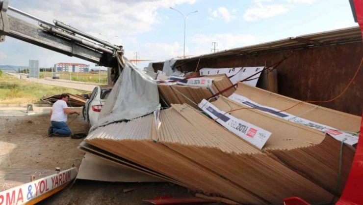 Aynı aileden 4 işinin içinde uyuduğu otomobilin üzerine MDF yüklü tır devrildi