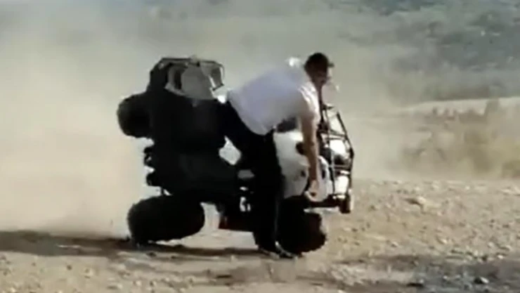 “Sinop Saraydüzü’nde oğlumla ATV ile gezerken bir anı kalmasını istedik, oğlumu indirdim ve video çekmesini istedim. O arada toprak yolda ATV ile giderken drift atmak istedim. Bir döndüm, iki döndüm, üç döndüm. Dördüncüde ATV beni döndürdü. O arada takla attım, oğlum da video çekiyordu. Sağlık durumumda herhangi bir sıkıntı yok, kolumda bacağımda sıyırıklar oluştu ucuz atlattık. Toprak yolda tavsiye etmiyorum.”