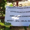 Kahramanmaraş'ın Elbistan ilçesinde bir vatandaş, bahçesinden dışarı sarkan asmadaki üzümleri, yoldan geçenlerin rahatça yiyebilmesi için 'Lütfen asmaları bıçak ile kesin, helal olsun' yazılı bir not bıraktı.
