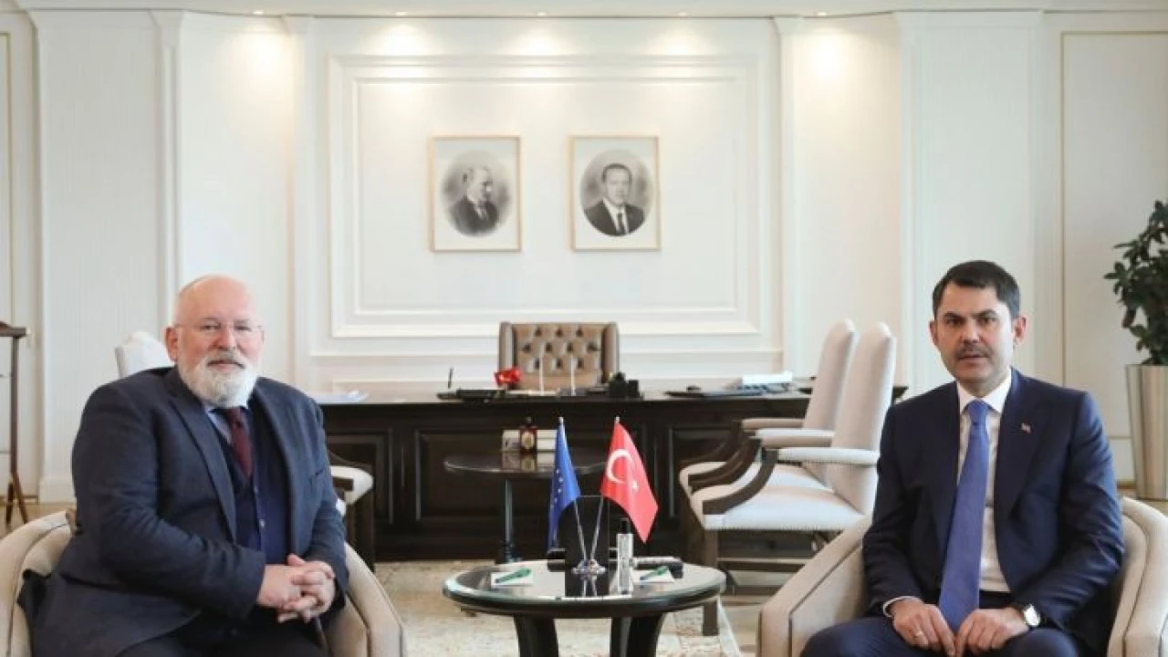 Çevre, Şehircilik ve İklim Değişikliği Bakanı Murat Kurum, AB Komisyonu Kıdemli Başkan Yardımcısı Frans Timmermans ve beraberindeki heyeti kabul ederek, bir toplantı gerçekleştirdi.
