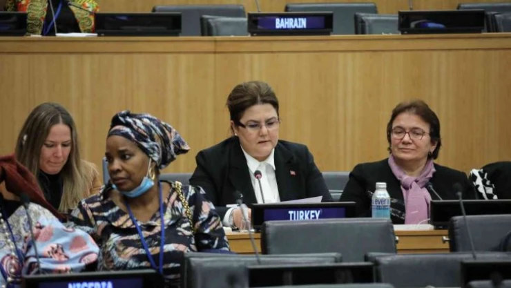 Aile ve Sosyal Hizmetler Bakanı Derya Yanık, New York’ta gerçekleşen Birleşmiş Milletler (BM) Kadının Statüsü Komisyonu (KSK) 66’ncı oturumunun “İklim Değişikliği, Çevre ve Afet Riskini Azaltma Politikaları ve Programları Bağlamında Kadın-Erkek Eşitliğini ve Tüm Kadın ve Kız Çocuklarının Güçlendirilmesini Sağlamak” başlıklı bölümünde konuştu. Bakan Yanık, bu yılın ana temasının daha fazla ertelenemeyecek küresel bir sorunu ele almak olduğuna dikkati çekerek, iklim değişikliğinin kadınları ve kız çocuklarını orantısız şekilde etkilediğini söyledi. Kadınların gıda ve beslenme güvenliğinin yanı sıra toprak, su ve doğal kaynakların korunmasında da güçlü bir rol oynadığını vurgulayan Yanık, “İklim değişikliği, çevre ve afet riskinin azaltılması politikaları kadınların ve kız çocuklarının özel ihtiyaçlarını dikkate almalı ve insan haklarını merkeze almalıdır. İklim adaletsizliğinin ana sonuçlarından biri iklim göçüdür. Ne yazık ki, pek çok mülteci, korkunç göç koşulları, barınma ve gıda eksikliği nedeniyle hayatını kaybetme riskiyle karşı karşıya” dedi.