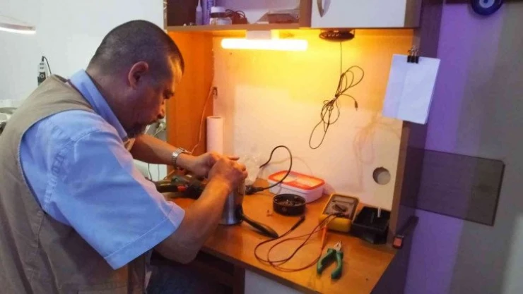Balıkesir’in Burhaniye ilçesinde Hukuk Mahkemeleri Yazı İşleri Müdürlüğünden emekli Ethem Zeybek, hobi olarak elektrikli ev aletlerini tamir etmeye başladı. İlçenin tek makine tamircisi olan 57 yaşındaki Zeybek, işini severek yaptığını ve işlere yetişemez hale geldiğini söyledi.
