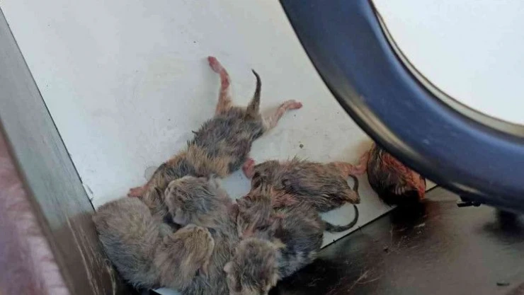 Karabük’te bir kız yurdunun deposunda baza içerisinde doğum yapan anne kedinin yavruları itfaiye ekiplerince kurtarılarak öğrencilere teslim edildi.