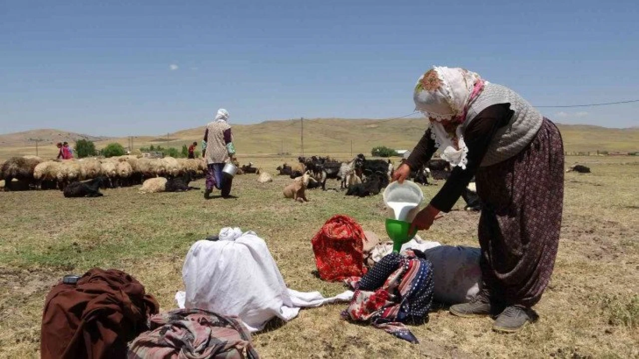 Muş’ta geçimlerini hayvancılıkla sağlayan berivanlar (süt sağan kadın), kavurucu sıcağa rağmen her gün kilometrelerce yol kat ederek koyunların sağımını yapıyor.