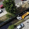 Beykoz’da İSKİ’ye ait freni tutmayan hafriyat kamyonu İETT durağına çarparak su kanalına uçtu. Korku dolu kazada kamyondan atlayan şoför burnu kanamadan kurtulurken, durakta bekleyen vatandaşların kaçarak kamyonun altında kalmaması muhtemel bir faciayı önledi. Kanala uçan hafriyat kamyonu havadan görüntülendi.