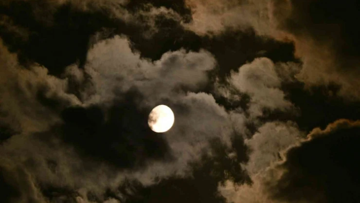 Bitlis'in Ahlat ilçesinde görülen Ay'ın gökyüzündeki bulutlar arasındaki geçişi hayranlık uyandırdı.