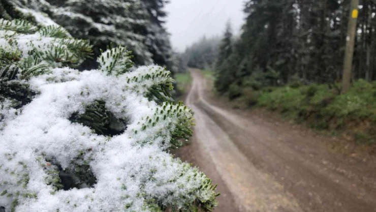 Bolu’nun Gerede ilçesinde yüksek kesimlerde yağan kar yeşil alanları beyaz örtüyle kapladı.