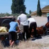 Araçlarından inip atı serinletmek için çaba sarf ettiler