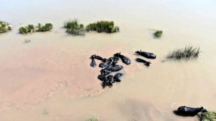 Türkiye genelinde yaşanan sıcak hava dalgası insanlar kadar hayvanları da etkiliyor. Sivas’ta sıcaklardan bunalan mandalar, kendilerini Türkiye’nin en uzun ırmağı Kızılırmak’a atarak serinliyor. Kalın deri yapısı nedeniyle sıcağı oldukça fazla hisseden mandalar, bu sayede hem ferahlıyor hem de temizleniyor. Afrika belgesellerini aratmayan mandaların serinlediği anlar renkli görüntülere sahne oluyor.