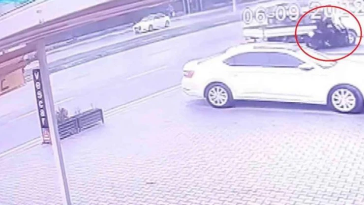 Kaza, merkez Yıldırım ilçesi Çevre Yolu üzerinde meydana geldi. Edinilen bilgiye göre, motosiklet sürücüsü önünde seyreden kamyonetin döneceğini fark edemeyerek arkadan çarptı. Kaza kıl payı atlatılırken, o anlar güvenlik kamerasına yansıdı.
