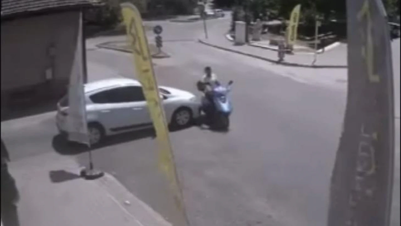Olay, merkez Osmangazi ilçesinde meydana geldi. Edinilen bilgiye göre, anayola çıkmak isteyen otomobil, seyir halindeki motosikleti göremeyince yola çıktı. Motosikleti fark eden otomobil sürücüsü çarpmaktan son anda kurtuldu. O anlar ise saniye saniye güvenlik kameralarına yansıdı.