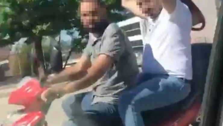 Bursa'da iki kafadar motosiklette sandalye taşıdı. O tehlikeli anlar başka bir sürücünün cep telefonu kamerasına yansıdı.
