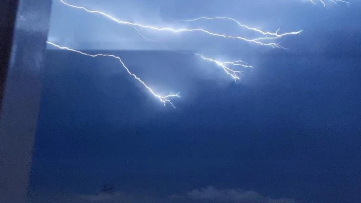 Bursa'da fırtına ve şiddetli yağışla birlikte çakan şimşekler geceyi aydınlattı. Şehir merkezinin birçok yerine yıldırım düştü. O anlar kameralara anbean yansıdı.