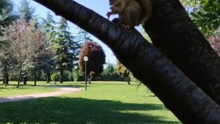 Bursa’nın Osmangazi ilçesinde bulunan botanik parka piknik yapmaya gelen bir ailenin yanına sincap geldi. Sincabın gelmesiyle birlikte şaşıran aile, cep telefonunu çıkararak o renkli anları kayıt altına aldı. Bir süre ailenin yanında bekleyen sincap, daha sonra geldiği yerden geri giderek gözden kayboldu.