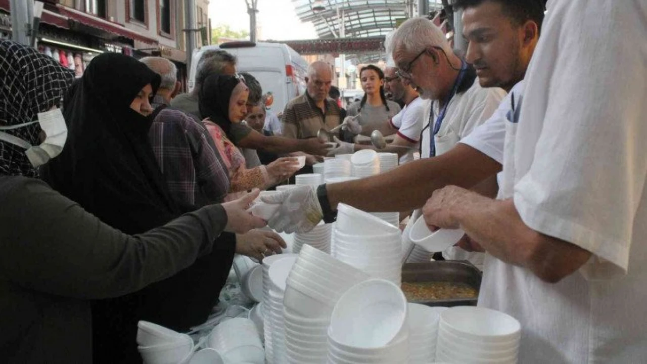 Bursa’nın tarihi Tuz Pazarı’nda 30 yıldır devam eden aşure etkinliği bu yıl da binlerce vatandaşın katılımıyla gerçekleşti.