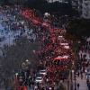Dev Türk bayrağı açılan yürüyüşte marşlar söylenildi.