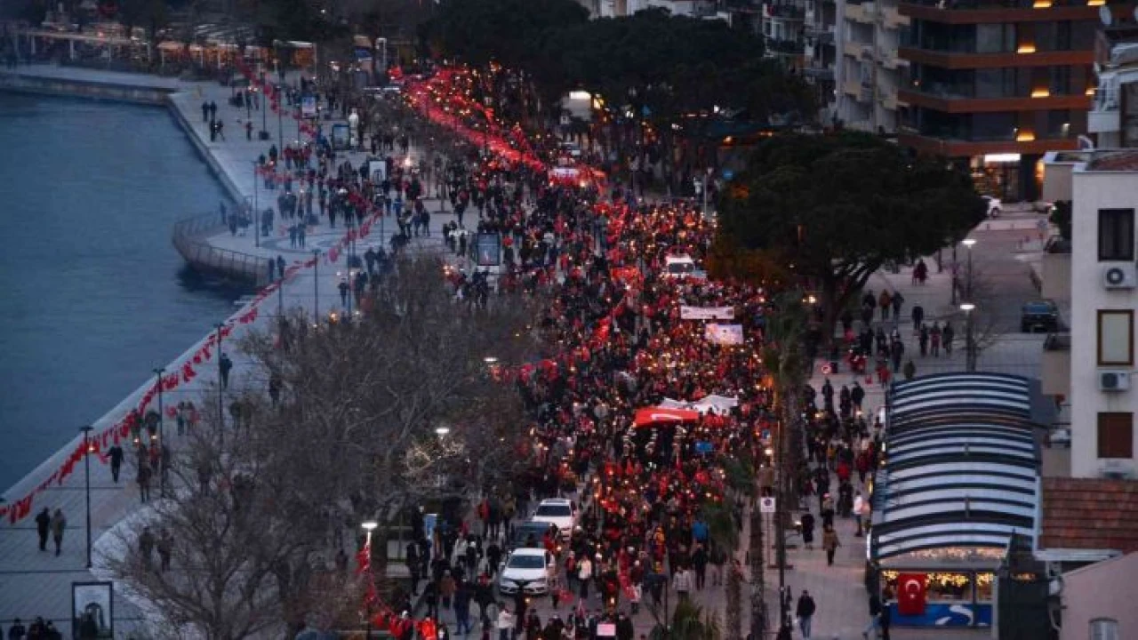 Çanakkale’de 18 Mart Deniz Zaferi’nin 107. yıl dönümü ve Şehitleri Anma Günü etkinlikleri kapsamında fener alayı düzenlendi.